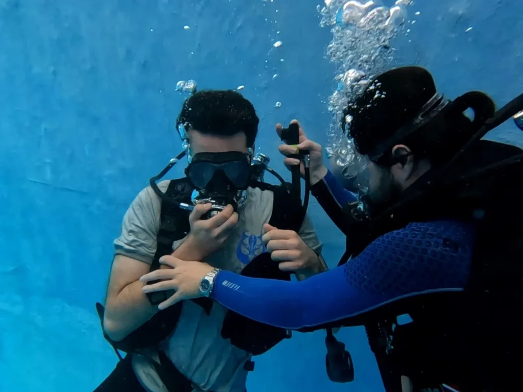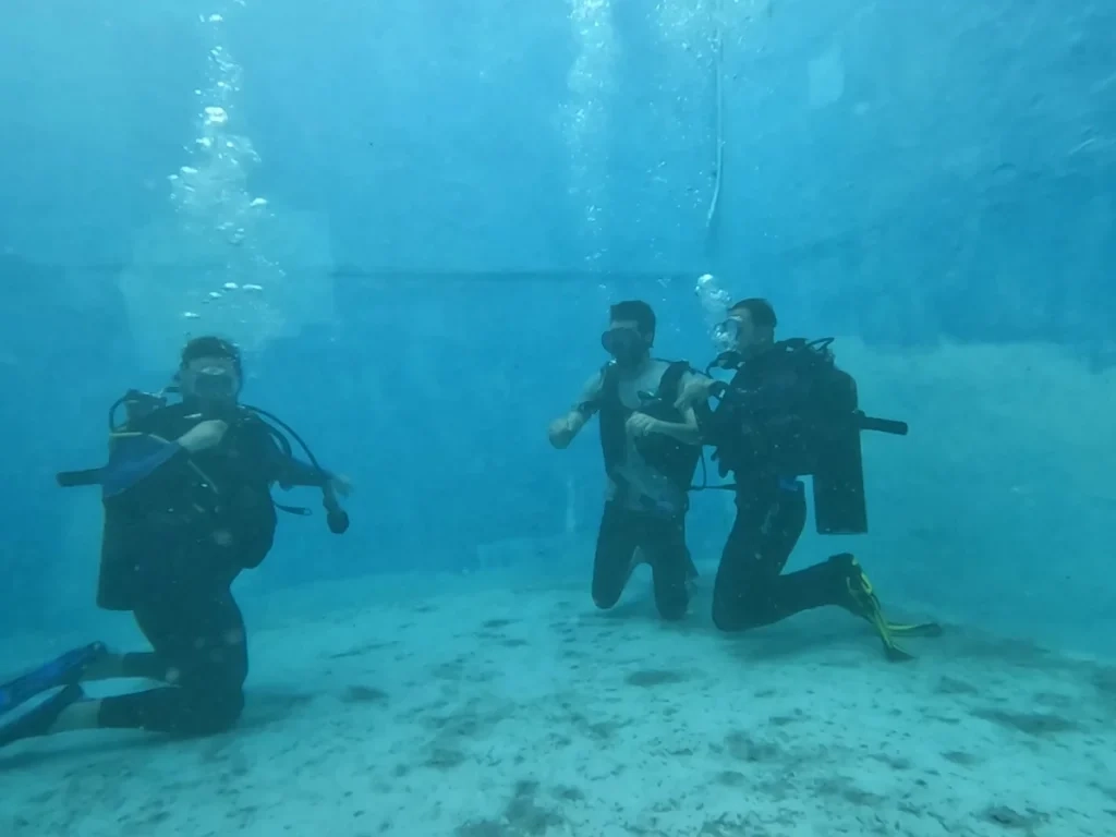 - آموزش پایه: تنفس با تجهیزات، حرکات ساده، ایمنی